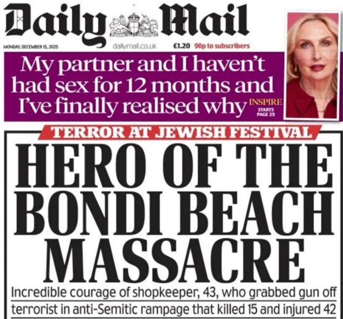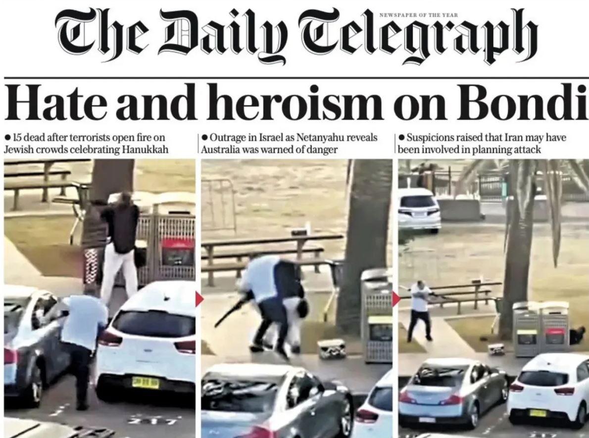 The Daily Telegraph ise haberi “Bondi’deki kahramanlık ve nefret” başlığıyla yayınladı.