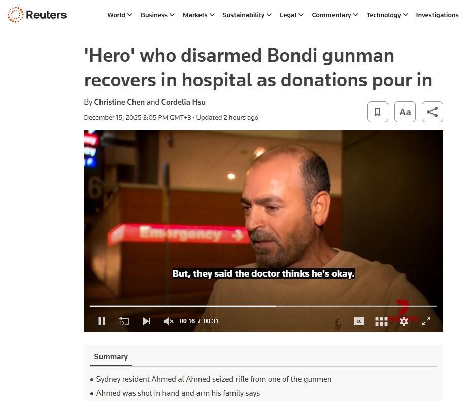 Reuters de Ahmed’i “kahraman” olarak niteleyerek, iyileşmekte olan adama gelen bağışların 1,1 milyon Avustralya dolarını (744.000 ABD doları) aştığını yazdı.